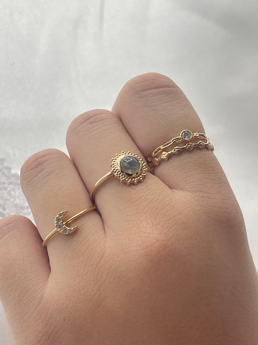 Bague Ilyana - pierre de lune et oxyde de zirconium
