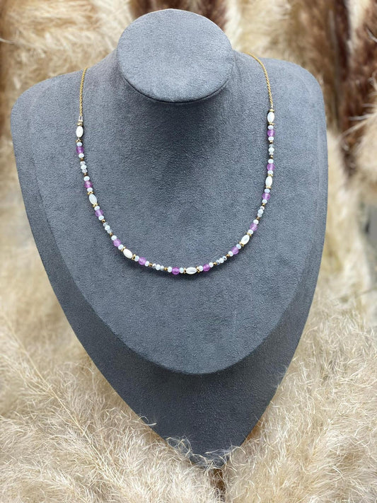 Collier Lola - en perle et pierres naturelles bleu, turquoise, rouge