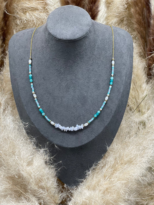 Collier Alexandry - Amazonite, calcédoine bleue & pierre de lune